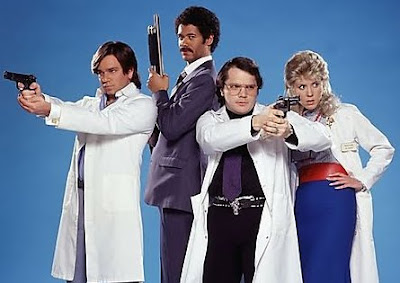 Dubbed "gratuitously violent, fearfully sick, but it was a good script" by Cushing, the posters to CORRUPTION stated that "no woman will be admitted alone to see this super-shock film." Rowan's murder sequences are still jaw-dropping today, amplified by the use of hand-held close-ups. With hair flapping around his sweaty crazed glare, the actor's slaying of a topless prostitute - stabbing her repeatedly on the floor before smearing his bloodied hands on her breasts then removing her head - is not only British horror's most shocking sequence, it also points towards the Seventies sleaze to come. The delirium is added another two layers with the arrival of Georgie and his gang in Seaford - an out of left field final act which sees a massacre by an out-of-control surgical laser - and amid production bickering, the "is it a dream?" ending.