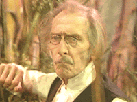 It is easy to forget Cushing’s more light-hearted roles (Perry's comment to his avian captors "you cannot mesmerize me, I’m British” echoes his quip from HORROR EXPRESS, "monster? we’re British you know!"). In isolated moments of his filmography, the actor gave a jovial twist which was otherwise consumed by his magisterial horrors. Early in his career he played a student in the Laurel and Hardy vehicle A CHUMP AT OXFORD, before developing his comedic craft in BBC productions such as TOVARICH and COMEDY PLAYHOUSE: THE PLAN. Television would also call at the height of his Hammer Horror excesses - Cushing was featured repeatedly as a guest on THE MORECAMBE AND WISE SHOW wondering when he was going to be paid - but the actor was wasted in latter box office "comedies" TENDRE DRACULA and SON OF HITLER. As a bookstore owner in TOP SECRET, Cushing sported a grotesquely large eyeball (the punch line to which he is first seen gazing through a magnifying glass), an arresting image for this most unassumingly playful of men.