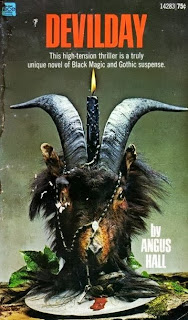MADHOUSE was loosely based on the novel Devilday by Angus Hall, a smutfest of late 60s/early 70s Satania. In the book Toombs is a sadistic heroin addict, a latter-day Aleister Crowley whose film career is in meltdown after being suspected of inserting an icicle up a vagina (paralleling Fatty Arbuckle's notorious scandal of 1921). Opening with a quote from Poe's Marginalia, of men who "soared above the plane of their race," during the course of the novel the faded star - as "the dark and dreaded" Dr Dis - enjoys relations with jailbait groupies, and appears at a Black Mass so that the congregation can (literally) kiss his ass. At the climax, he is killed by a falling rock, and a swarm of fans scavenge his corpse for souvenirs; but years later the book's narrator glimpses Toombs in a Rolls-Royce, leading him to suspect that the notorious actor's LaVeyan mayhem will resume.
